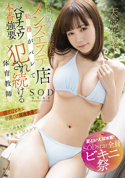 シリーズ【夏といえば水着!SODstar全員ビキニ祭】絶倫教頭(55歳独身)にメンズエステ店勤務がバレて粘着ベロチュウと本番強要で犯●れ続ける体育教師 天宮花南